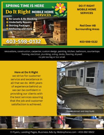 DO IT RIGHT MOBILE HOME SERVICES 403 598 0132 Red Deer Throughout AB