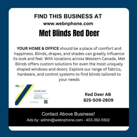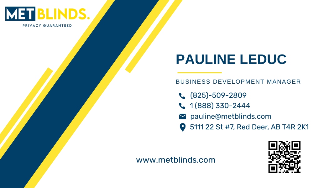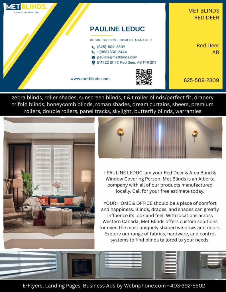 I PAULINE LEDUC, am your Red Deer & Area Blind & Window Covering Person. Met Blinds is an Alberta company with all of our products manufactured locally. Call for your free estimate today.